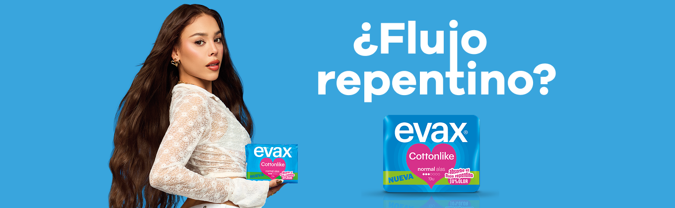 Gracias a sus alas adapt y a la cobertura con tacto de algodón, Evax Cottonlike te ofrece mayor comodidad cuando la llevas, pero también en el momento de quitártela. Además, su sistema único dual con perlas activas neutraliza el olor y absorbe el flujo al instante para que te sientas hasta 100% limpia. Con Evax te sentirás limpia, te sentirás bien.
