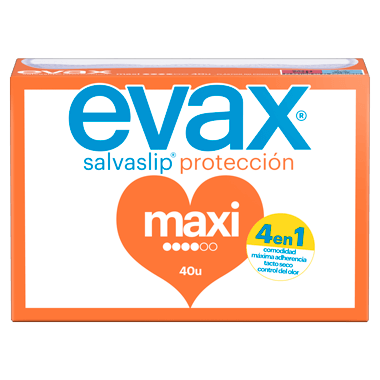 Para sentirte fresca durante todo el día, tienes los Protegeslips EVAX Salvaslips®. Tan suaves como tus braguitas, debido a su cobertura con tacto de algodón, estos salvaslips cuentan con el Sistema No Olor® para que te sientas cómoda todo el día. Además, su núcleo superabsorbente y bandas de protección lateral te mantendrán protegida todo el día. Estos salvaslips están disponibles en tres niveles de absorción para adaptarse a tus necesidades: EVAX Salvaslip® Maxi ofrece un 50 % más de absorción que EVAX Salvaslip® Normal, para cuando necesitas mayor seguridad.